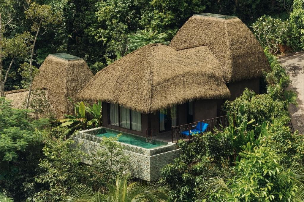 تحتوي جميع غرف الفندق علي مسبح خاص ، مناطق جلوس ، تراس بإطلالات ساحرة على البحر والغابات الكثيفة، كما تضم ميني بار به مجموعة من المشروبات الغازية المجانية. يحتوي الحمام الخاص الداخلي علي جميع لوازم الاستحمام المجانية وحوض استحمام.