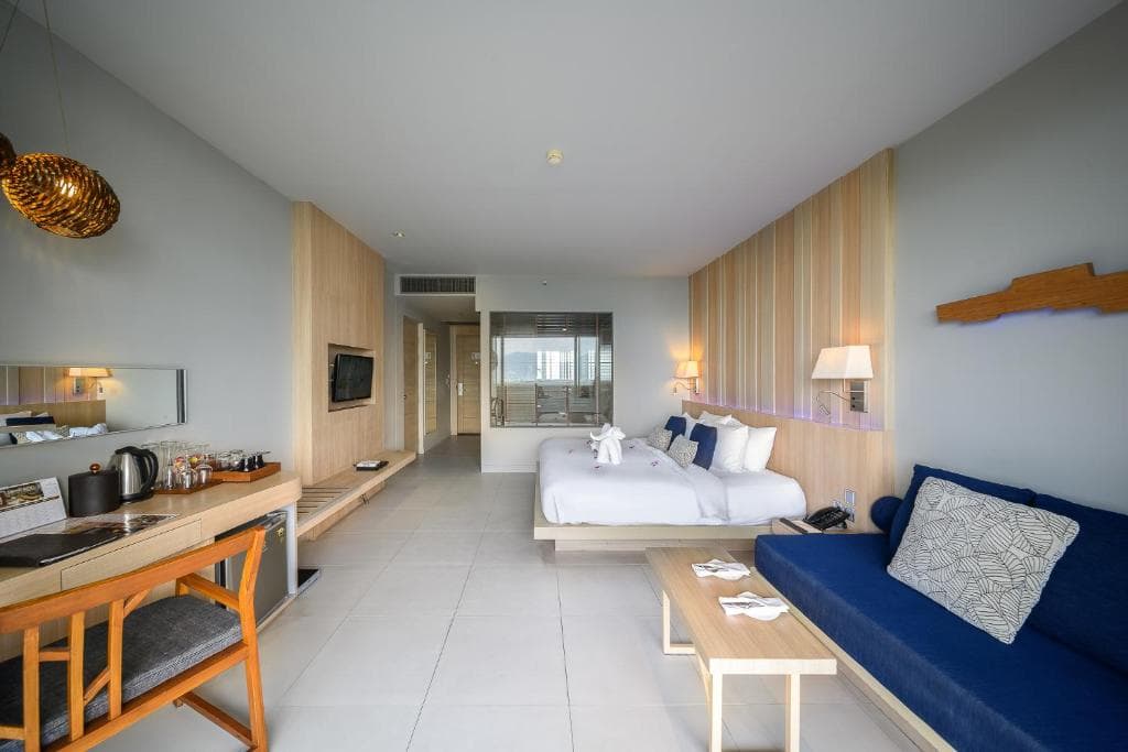 تحتوي غرف الفندق علي تكييف وخدمة الواي فاي المجانية ، وجهاز تلفاز بشاشة مسطحة مع قنوات فضائية وصندوق ودائع آمن، وميني بار . تشتمل الغرف علي حمام داخلي خاص به حوض استحمام ، تتمتع معظم الوحدات على إطلالات رائعة على البحر.